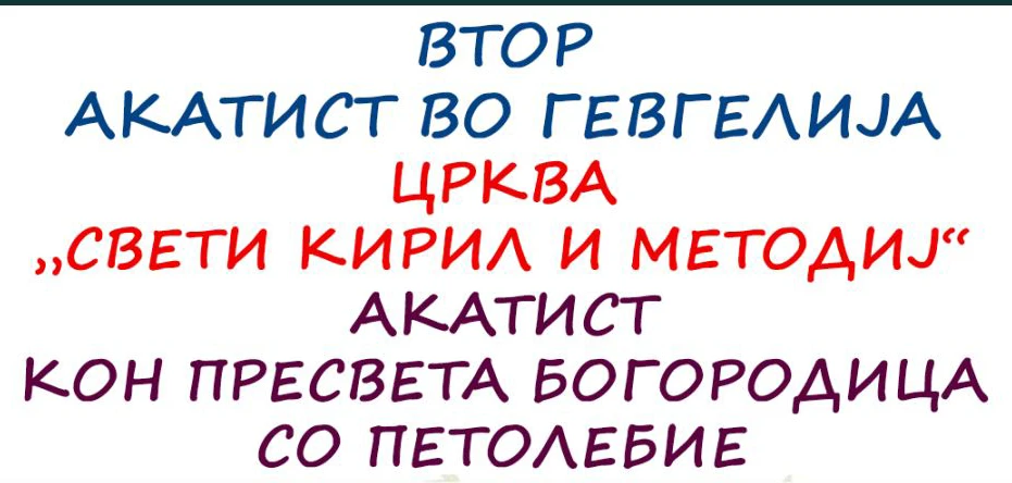 Во петок, 06 март, во црквата „Свети Кирил и Методиј“ во Гевгелија, ќе се одржи Акатист кон Пресвета Богородица со петолебие — богослужба на која верниците традиционално се собираат на заедничка молитва.