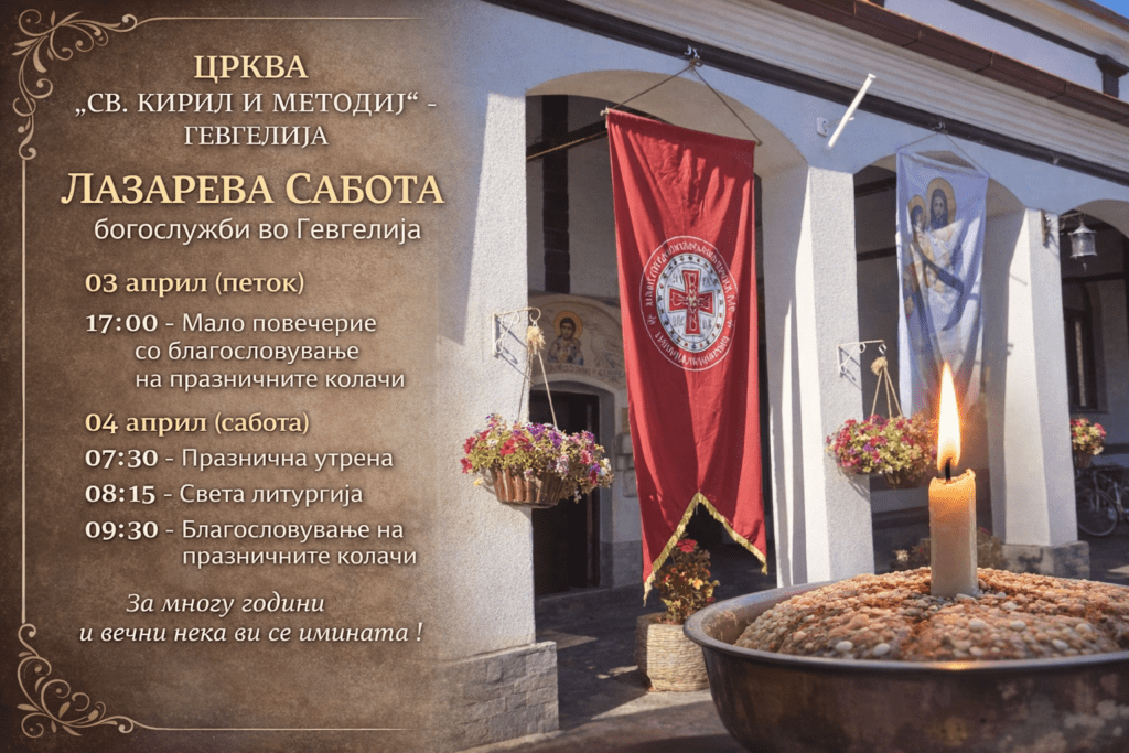Во црквата „Свети Кирил и Методиј“ – Гевгелија, на 03 и 04 април, ќе се одржат богослужби по повод Лазарева Сабота, еден од значајните православни празници.