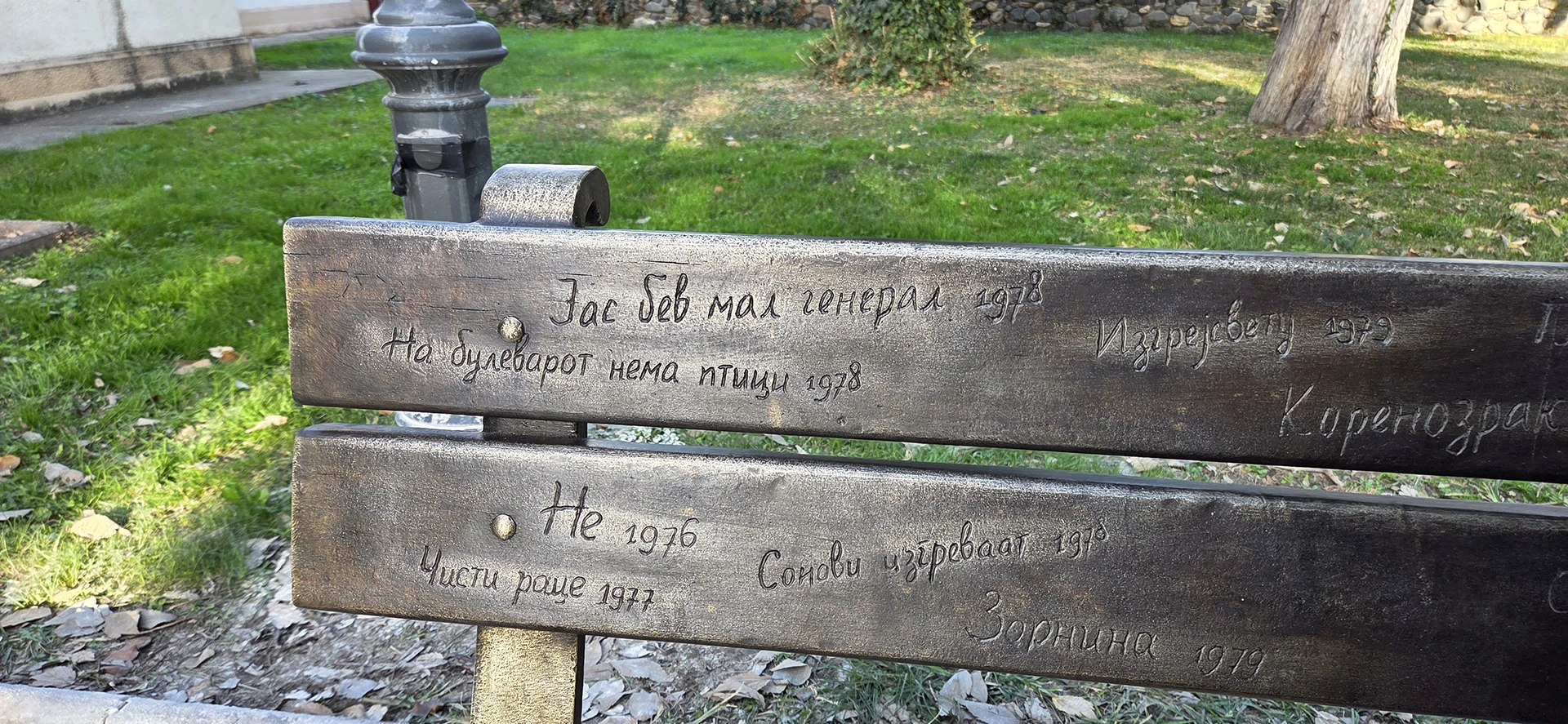 Во делото посветено на Џаџев, Кованцалиев го претставува како седнат на клупа – во момент на размислување и творечка инспирација. Споменикот пренесува смиреност, интелект и духовност – токму карактеристиките што го правеа Илија Џаџев посебен.