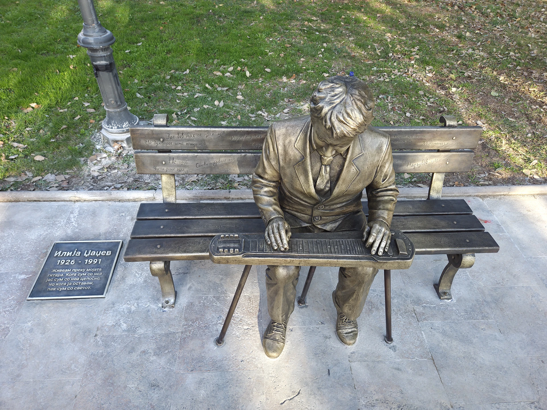 Во центарот на Гевгелија деновиве е поставен споменикот на еден од најпрепознатливите гевгелиски ликови – Илија Џаџев, професор, поет и виртуоз на хавајската гитара.