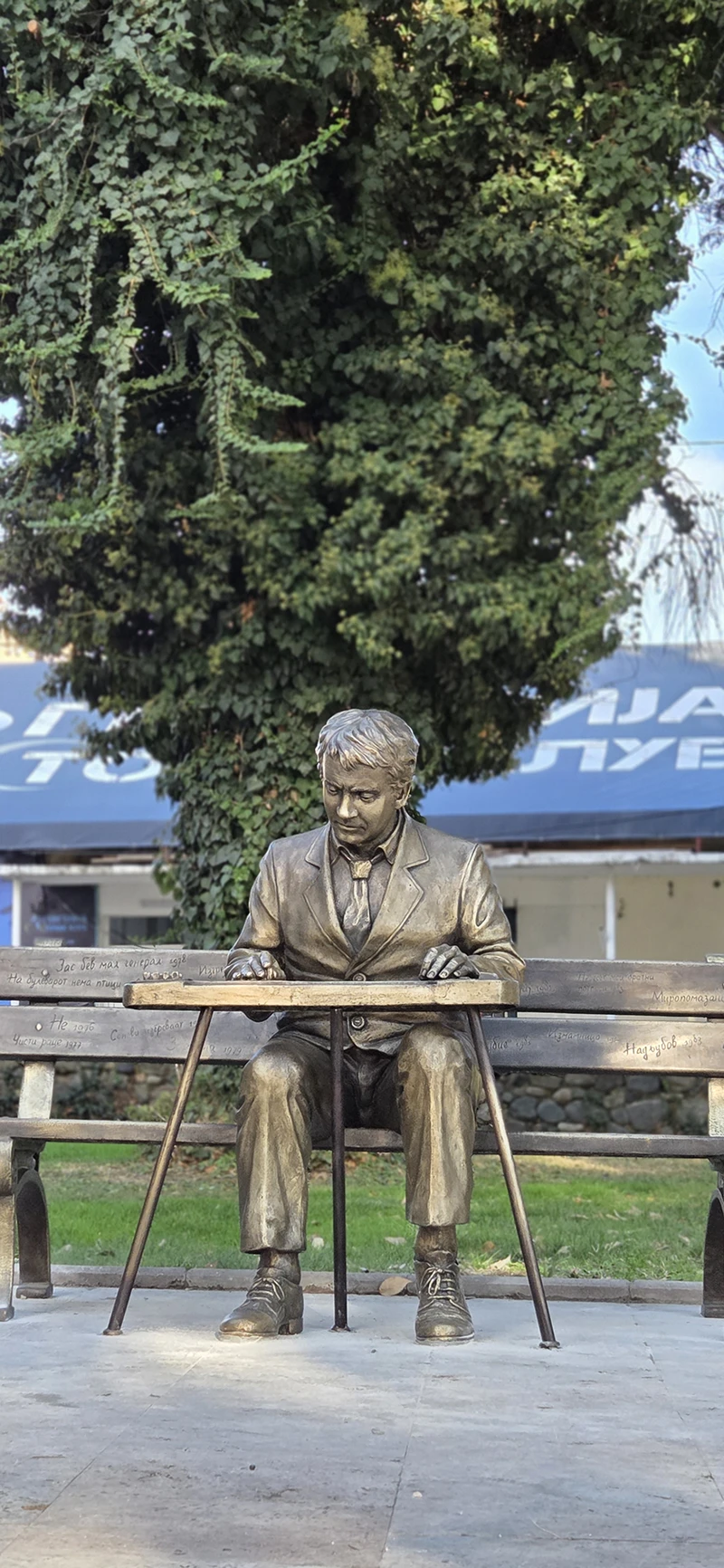 Споменикот е поставен пред Театарот во Гевгелија, и претставува нова културна знаменитост што ја обединува уметноста, споменот и локалниот идентитет.