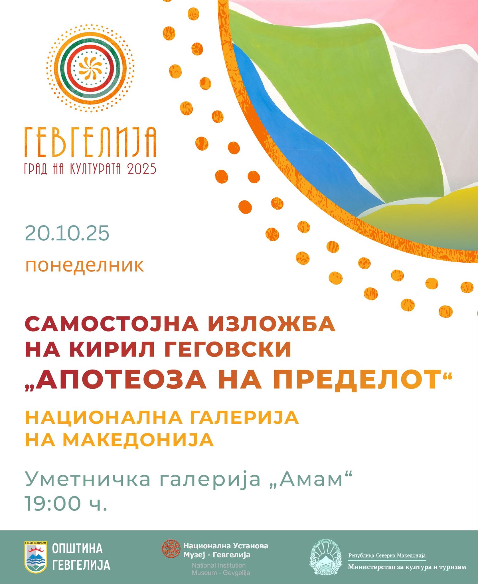 Во рамките на програмата „Гевгелија – град на културата 2025“, на 20 октомври (понеделник) со почеток во 19:00 часот, во галеријата „Амам“ ќе биде отворена самостојната изложба на познатиот ликовен уметник Кирил Гегоски, под наслов „Апотеоза на пределот“.
